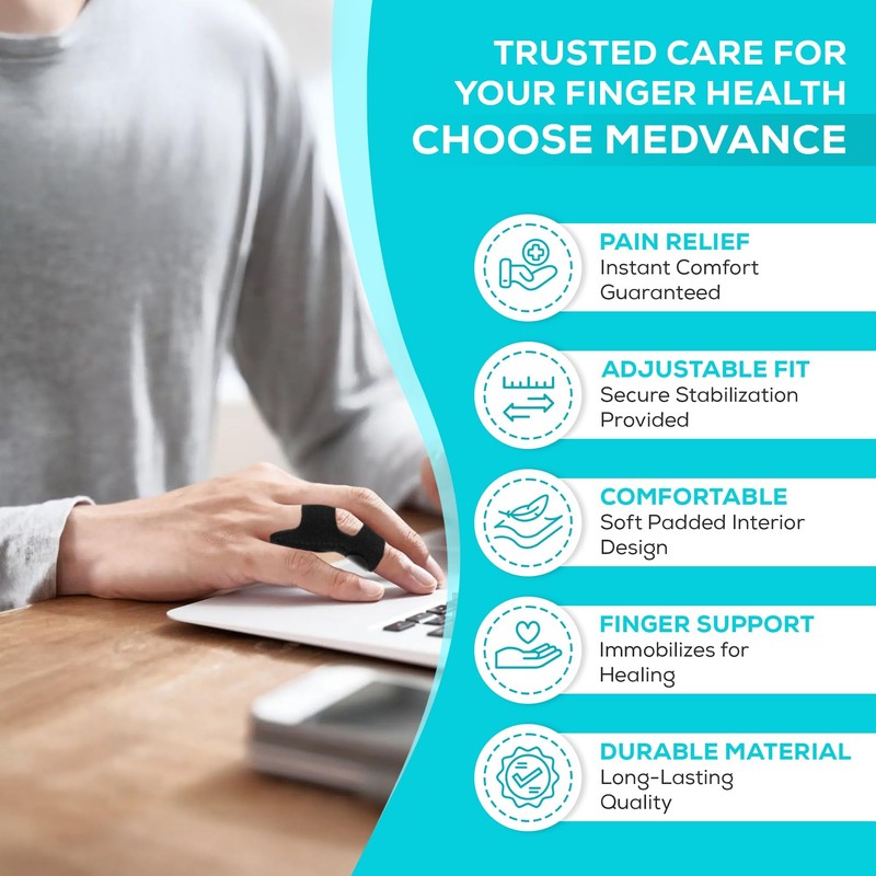 MedVance Elivo Finger Splint, Doubkle Strap, Trigger Finger Support Brace for Thumb, Index, MIddle, Ring, and Pinky Finger, Size-Large, 3 Pack