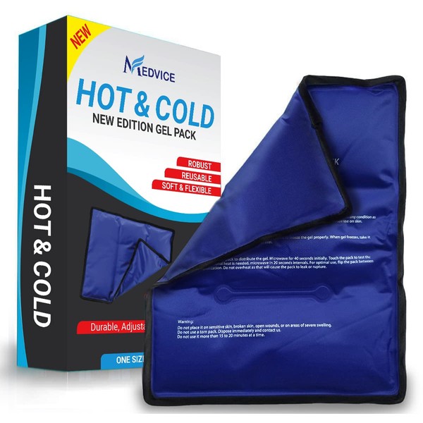 - ✅ DUAL REUSABLE COLD & HOT THERAPY - Multi-use cooling pack & heating pad that transfers heat and cold evenly to relieve acute and chronic pain, muscle pain, arthritis, menopause, inflammation, swelling, and aid injury recovery. Simply switch in between hot and cold - takes 60 minutes to freeze. Once room temperature, heat up in microwave for 40 seconds. Medvice hot and cold pack offer both hot and cold therapeutic support.
