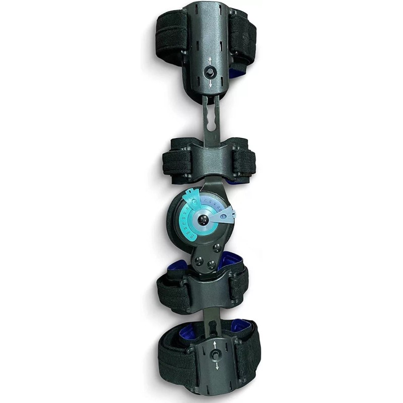 Beneficios: Las bisagras de aluminio con rango de movimiento permiten el ajuste de flexión y extensión para proporcionar un rango de movimiento protegido y controlado en los procedimientos de rehabilitación. La correa ajustable que se coloca en el cuello hacia el soporte, ayuda a dar una inmovilización adicional y coloca al brazo en una posición deseada con descanso