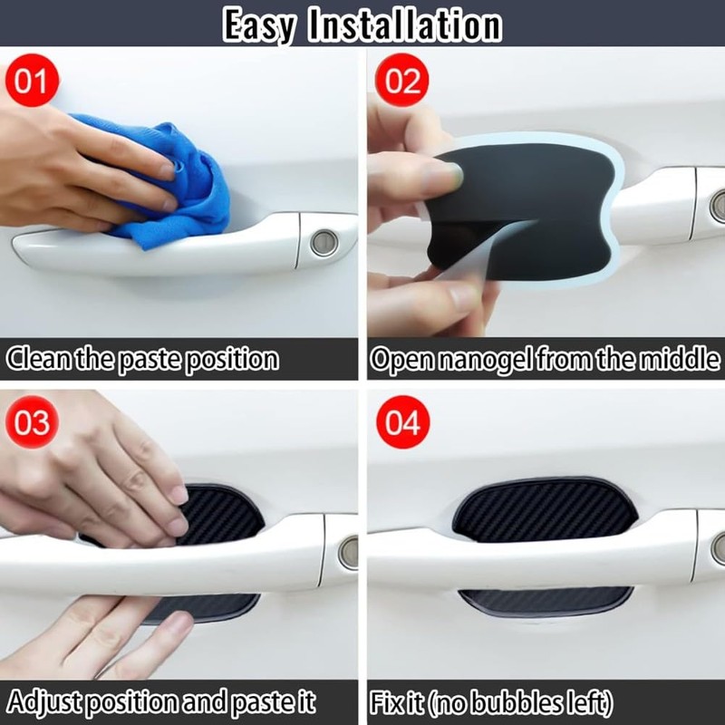 Self-adhesive and traceless: groove of the car door handle, door handle sticker has a strong adhesive, high adhesion, strong wear resistance, does not fall off easily and ensures that it sits firmly. Besides, it will not leave any marks on the surface of your car when you peel it off again.