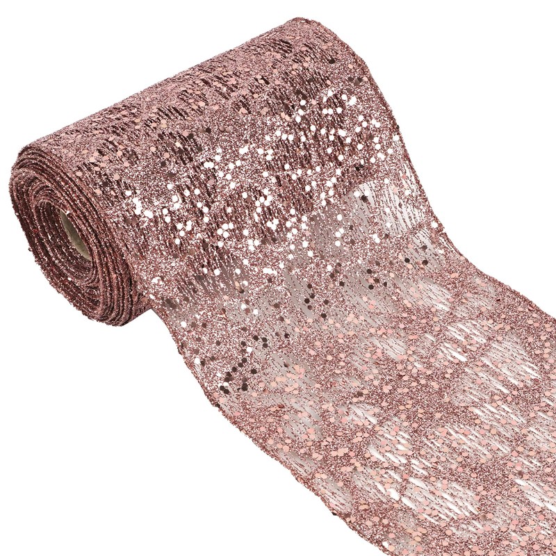 - Transform your crafting projects and holiday decorations with our luxurious rose gold glitter mesh wired edge ribbon. Measuring an impressive 6 inches in width and 10 yards in length, this ribbon features a stunning mesh design adorned with glitter, creating an eye-catching sparkle that elevates any creation. The elegant champagne color adds a touch of sophistication, making it perfect for festive occasions and celebrations.