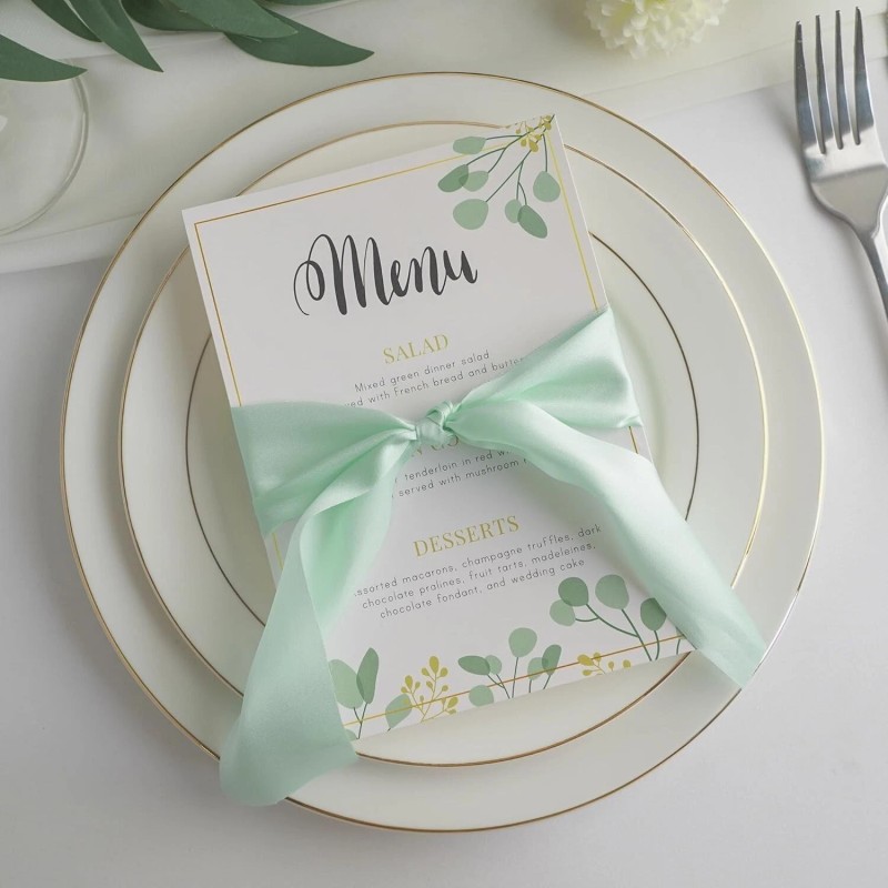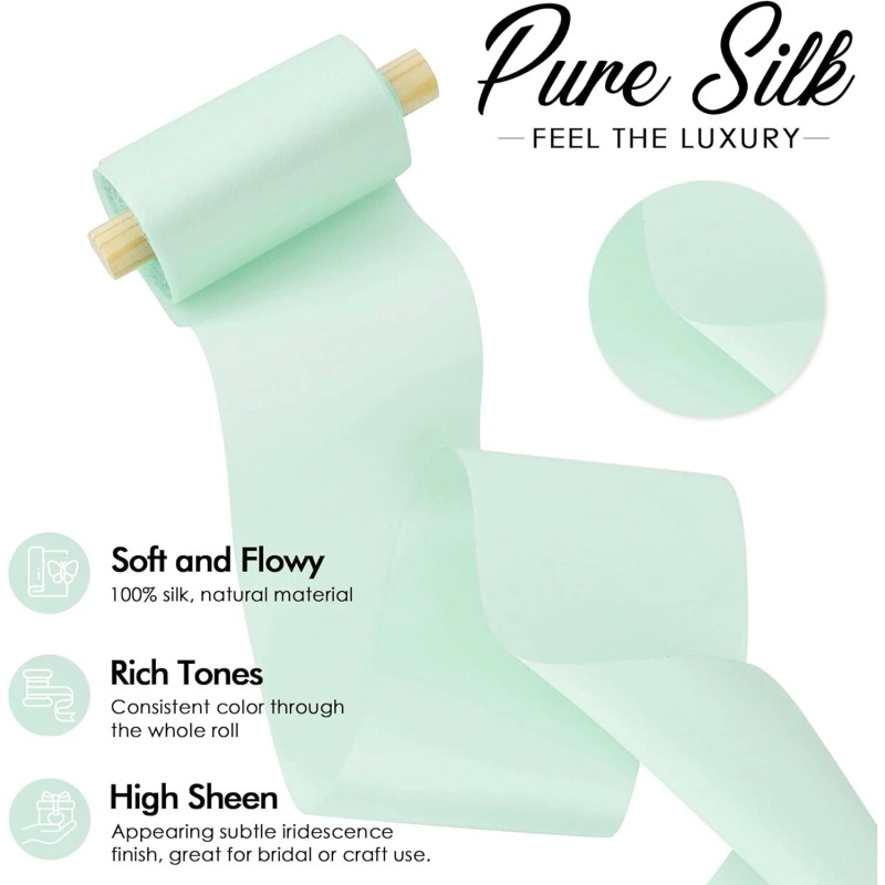 - Beautiful pure silk ribbon with straight cut and comes in MINT color. Each roll is 2 inch in width and made in a continuous length of 5 yards. Each silk ribbon comes spooled on a wooden spool, which makes it a must-have of styled shoots and keepsakes.