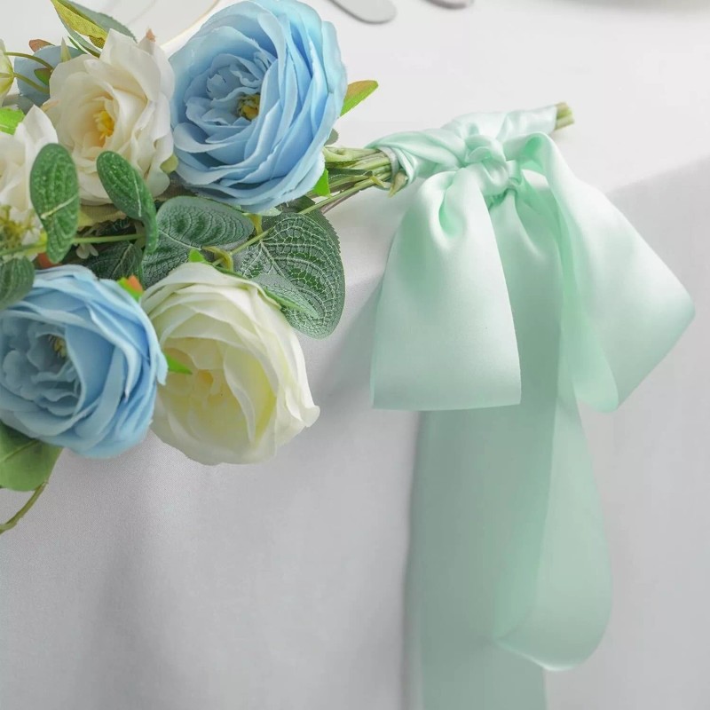- Our lightweight silk ribbons are completely gorgeous and special. They perfect for a romantic bridal bouquet. Loosely wrapped around the bouquet they blow in the wind and are a great photo prop. It looks especially nice if you combine several ribbons in different widths and colors. It is so uncommonly for your special events, wedding aisle backdrop decor, table decor, flower girl basket, centerpieces, shower party, gift basket or any decoration.