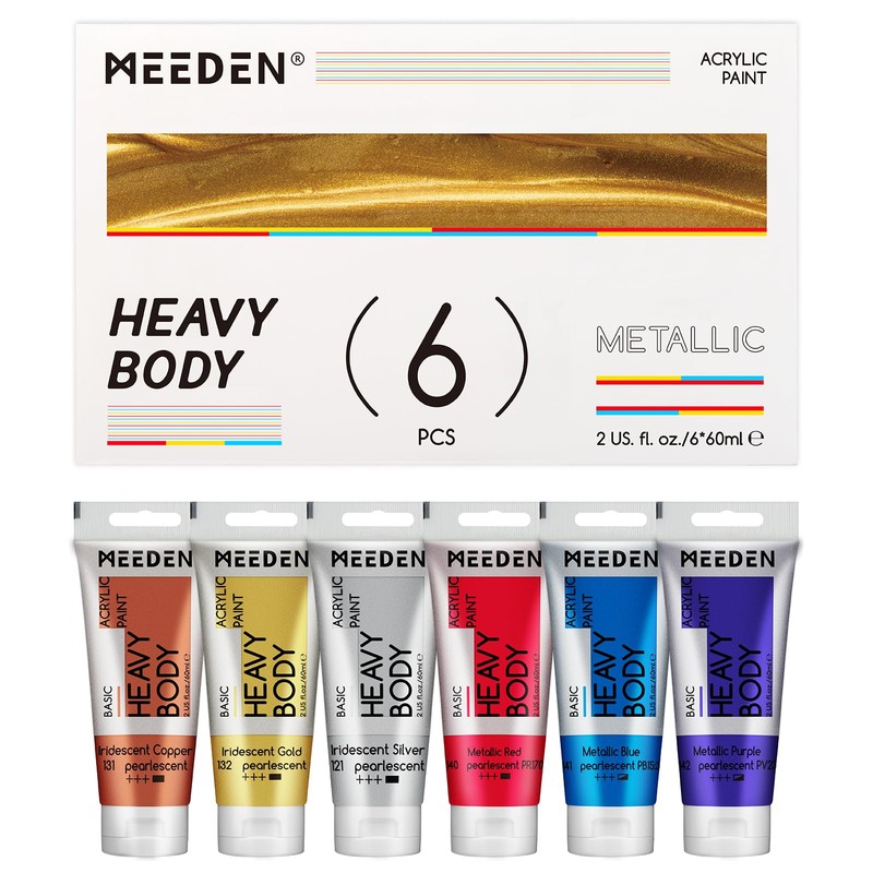 - Versatility: Gel-like medium added. The consistency is suitable for virtually any surface. The MEEDEN metallic acrylic paint set can be used for glass projects, canvas works, ceramic, eggs, metal, etc. This metallic acrylic paint kit can also be used as a sidekick to embellish your paintings. Therefore, these art supplies can be used in any environment, such as classroom, studio, home, garden and outdoor, etc.