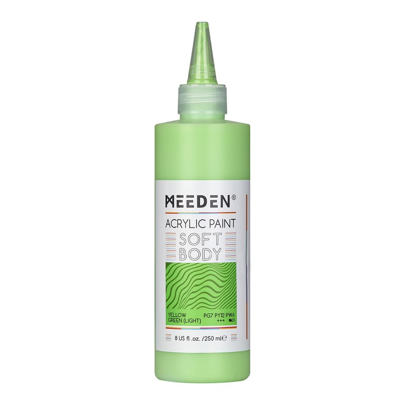 MEEDEN Soft Body Acrylic Paint: Yellow Green Light Matte Finish - 250ml/8.45oz Bulk Acrylic Colors in Ergonomic Bottle - Fluid Flow Art Paints for Artists Canvas Painting