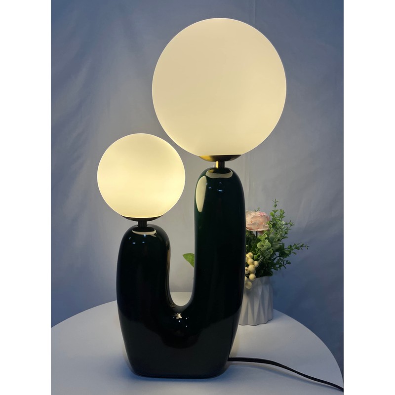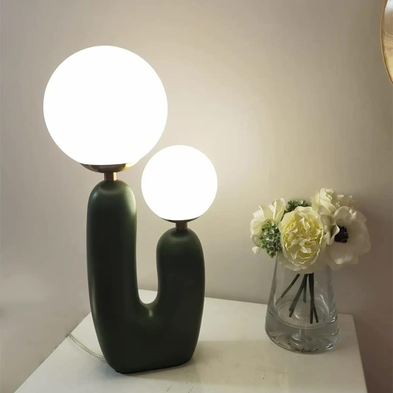 Meefad Modern Bedside Lamp, 2 Lights Table Lamp with Glass Shade, Globe Night Light for Bedroom Reading Nightstand, Green