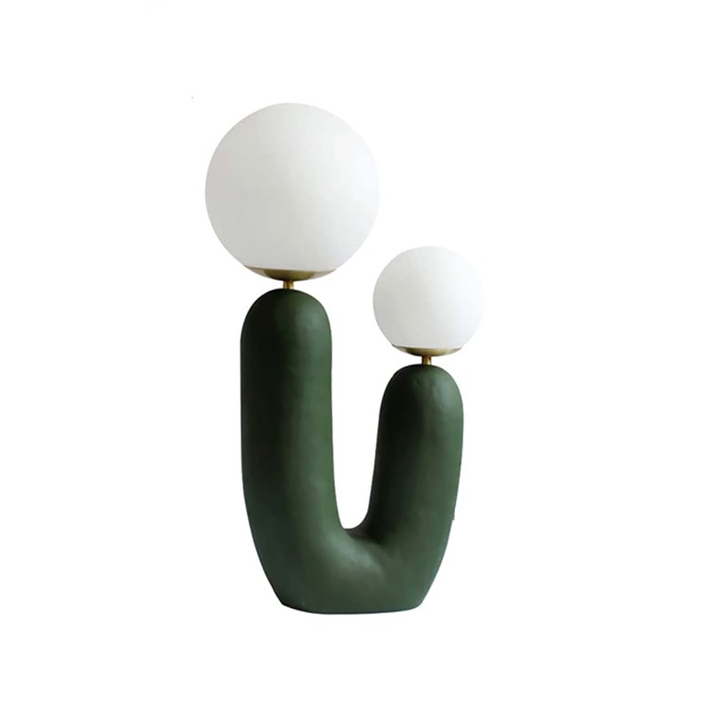 - DETAILS: Constructed of Resin with Green Finish and Glass Shade.