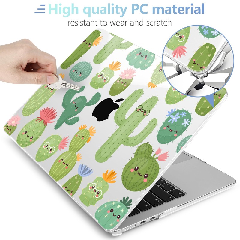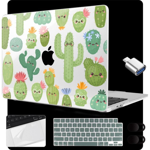 MEEgoodo Case for MacBook Air 15 inch M4/M3/M2 2025 2024 2023, Case Fit Model (A3241/A3114/A2941) for MacBook Air 15-inch, Laptop with Keyboard & Camera Cover & OTG Adapter, Smiley Cactus