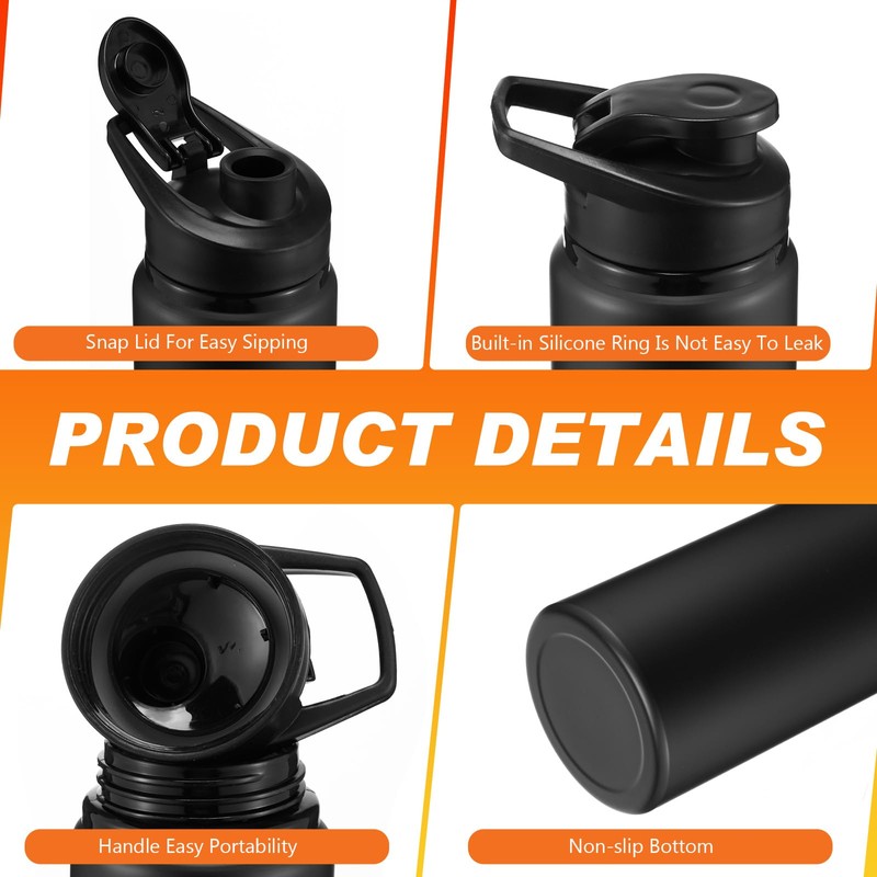 - Portable and No Leakage Design: our aluminum water bottle with a sturdy handle, is easy to carry around, and it can usually be hooked with your fingers or hung on the handlebars of your bike; The snap lid design makes the bottle not easy to leak, keeps dust away from your bottle, neat and clean, and you can store it safely in your bag