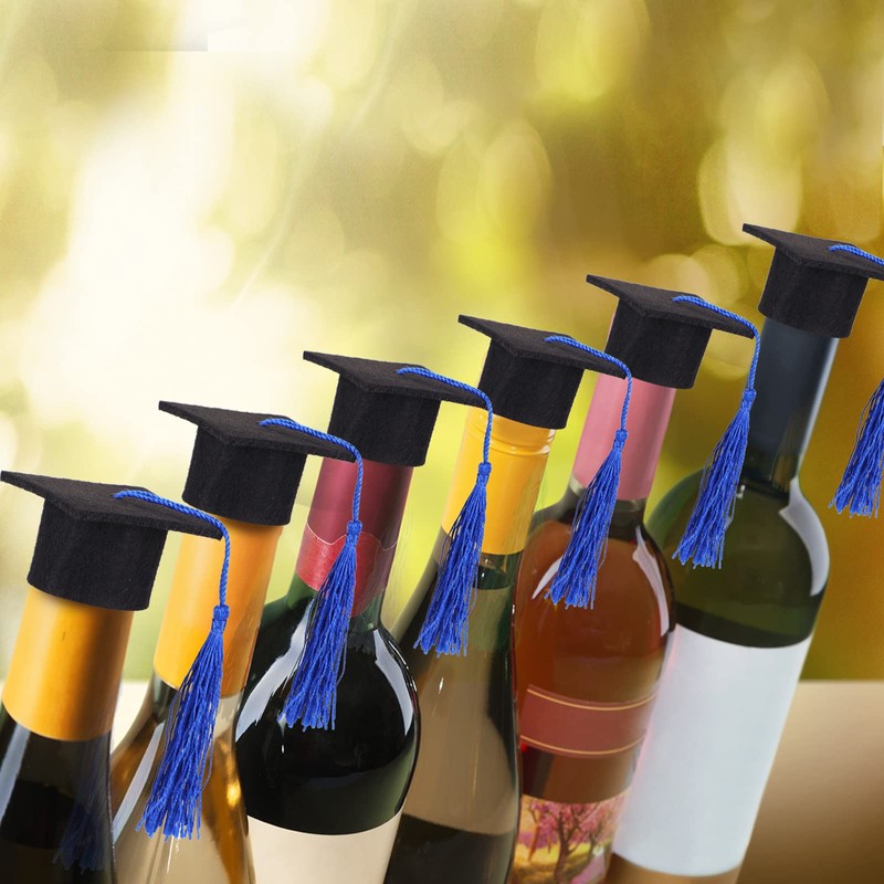meekoo Mini Graduation Cap Class of 2025 Mini Graduation Hats with Tassels Small Black Grad Cap Bottle Topper Decorations