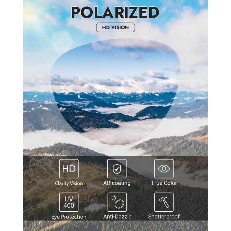 - Polarized UV Protection System|Triple-layer optical structure, including polarized layer (99.2% glare reduction), UV400 barrier (99.9% UVA/UVB blockage), Anti-reflective coating (internal reflection <0.5%).
