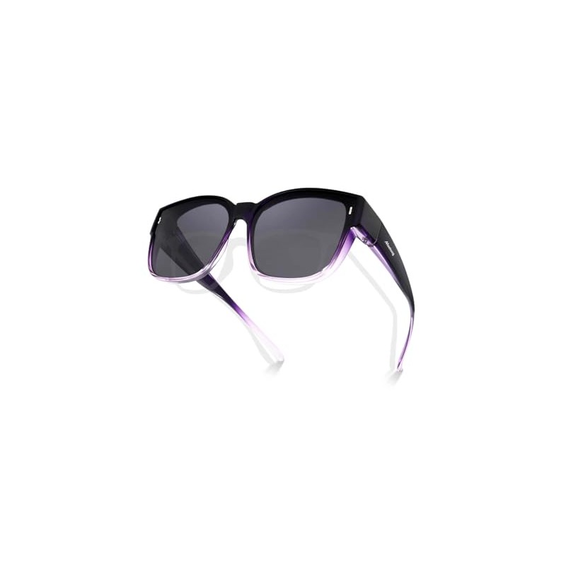 Meeloog Polarised Over Sunglasses for Men and Women, Glasses Wearers, UV400 Protection Sunglasses, Square Sunglasses Driving DEMST0110, D1 Gradient Purple Frame/Black Lens