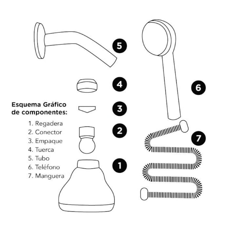 - 🚿【FÁCIL DE INSTALAR】 La regadera está diseñada para una instalación sencilla y rápida. Sin necesidad de romper la pared o llamar a un plomero. Incluye: regadera, conector, empaques, tuerca, tubo, teléfono y manguera.