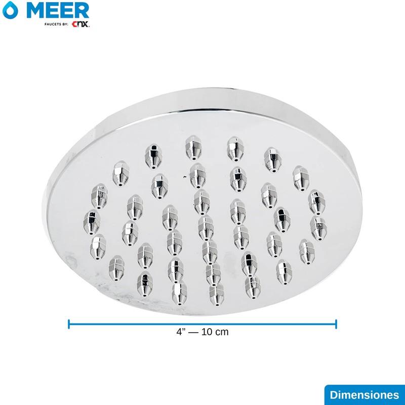 - La regadera redonda de 10 cm de MEER Faucets by CNX es perfecta para darle un toque moderno a tu baño. Su acabado cromado proporciona un aspecto moderno y elegante que se adapta a cualquier estilo decorativo.