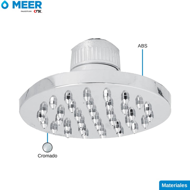 MEER FAUCETS BY CNX | Regadera Redonda de 10 cm, Cromado. Multiposición, Anti-Sarro y Funciona con Presión Baja