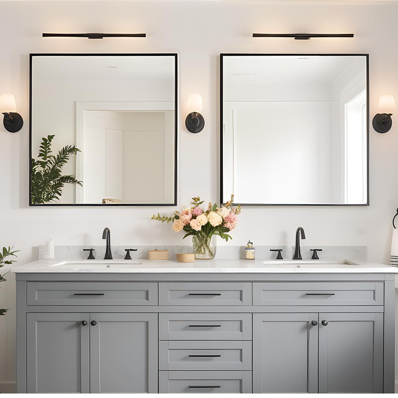 - BATHROOM MIRROR : The bathroom mirror 30x30 inch are designed High-grade frame with HD Glass. Matte black board. This simple but durable design black retangle mirror could stand by time. Wall mirror is premium anti-rust aluminum alloy.