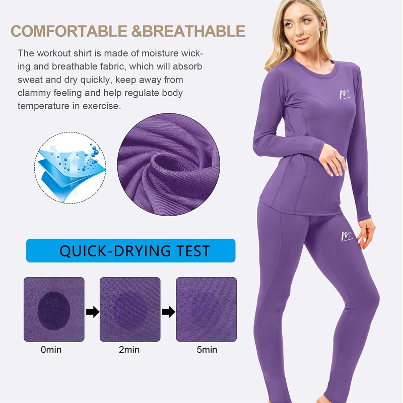 MeetHoo Thermal Underwear for Women, Winter Warm Base Layer Compression Set, Fleece Lined Long Johns Running Skiing Purpel