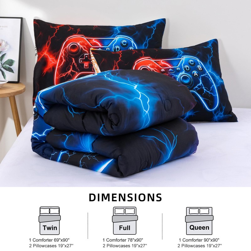 - Cool Gaming Design:The boys bedding set features a bold 3D game controller with lightning background, perfect for young gamers. The gaming bedding set adds a stylish and energetic vibe to any kid's room.