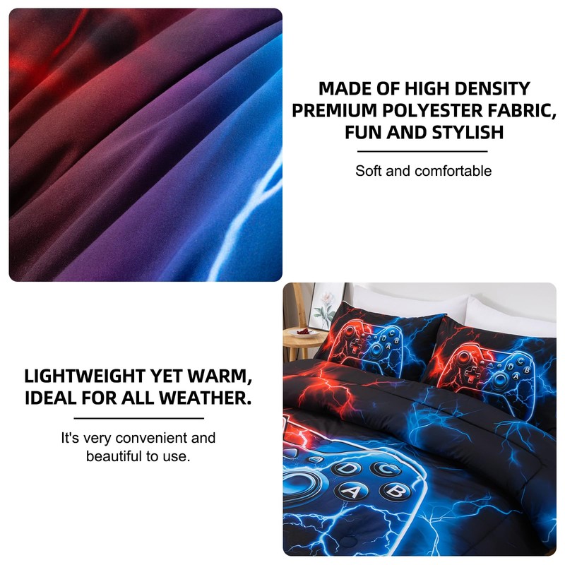 - Ultra-Soft & Comfortable:Made of 100% polyester microfiber, this gamer comforter is incredibly soft, breathable, and gentle on sensitive skin—ideal for a restful sleep.