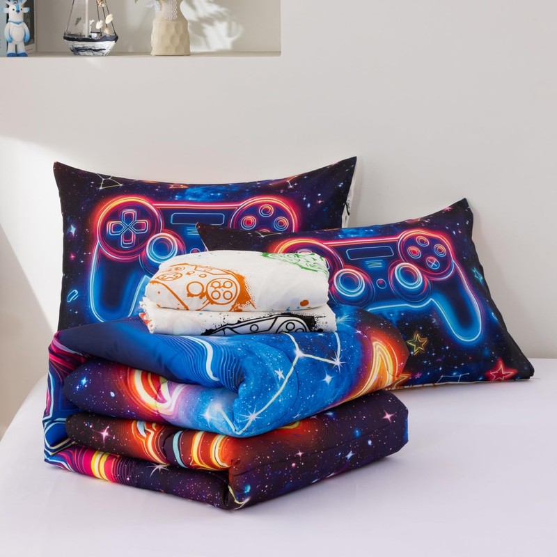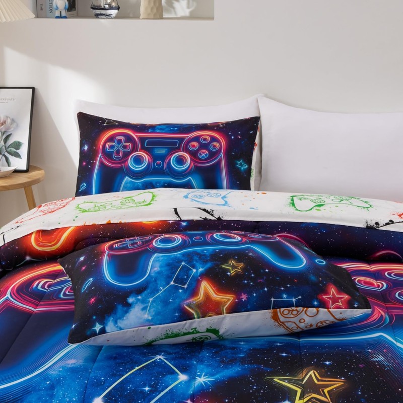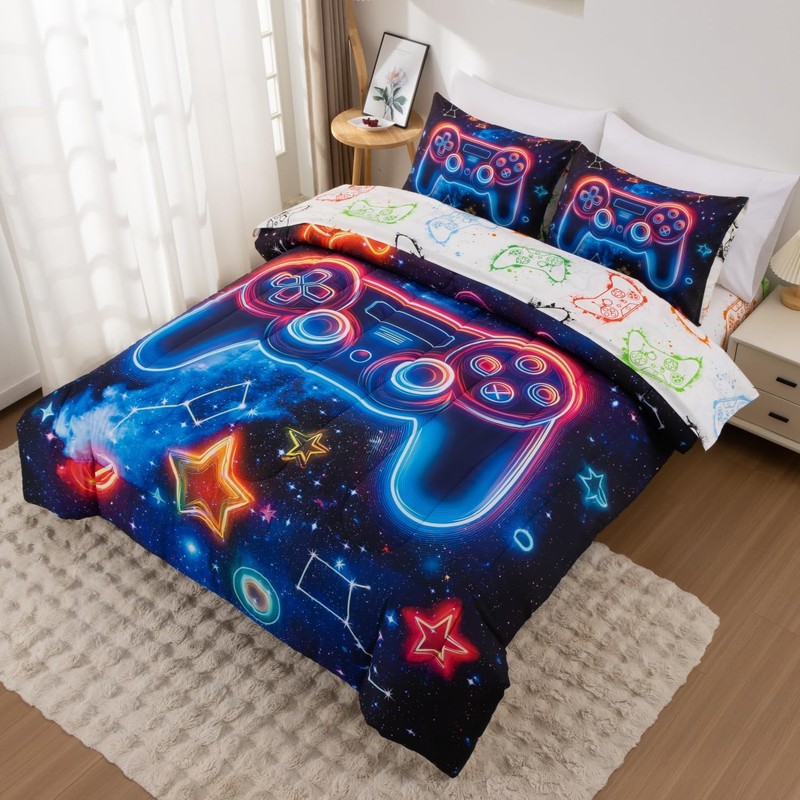 - Stylish Design: The twin bedding sets for boys features a unique gaming controller pattern that exudes a strong sense of technology and modernity. The gaming controller comforter is also a great home decor item. It adds a playful and contemporary vibe to the bedroom, making it an excellent choice for children who love gaming and technology.