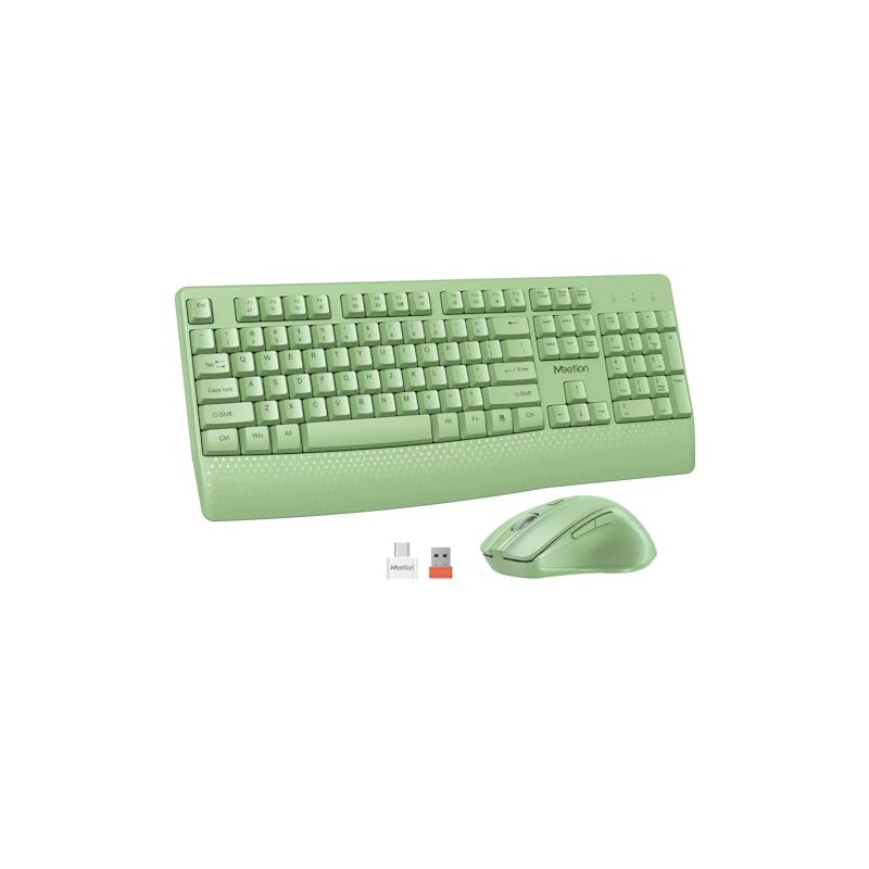 MEETION Wireless Keyboard and Mouse, Full-Sized Cordless Keyboard with Wrist Rest and 3 DPI Adjustable Mouse, 2.4G Wireless with PC/Computer/Laptop/Windows/Mac, Green