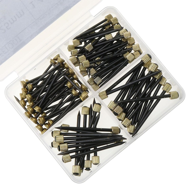 - A great value package for a comprehensive range of needs:This set includes 110 pieces of high quality picture frame nails with different sizes of copper cap nails: 1.3x25 black copper cap nails (40 pcs) 1.4x25 black pierced copper head nails (40 pcs) 1.8x35 black pierced copper head nails (30 pcs) All the nails are neatly organised in a convenient storage box, space saving, easy to carry and store, especially suitable for use when moving or home decoration.