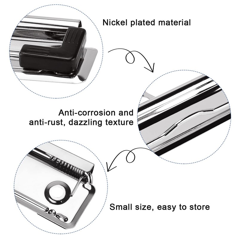 • Long-lasting clipboards clips fit to satisfy your every-day needs. The clip front and back surfaces are smooth and the corners are rounded. The polished metal clip features a sturdy spring