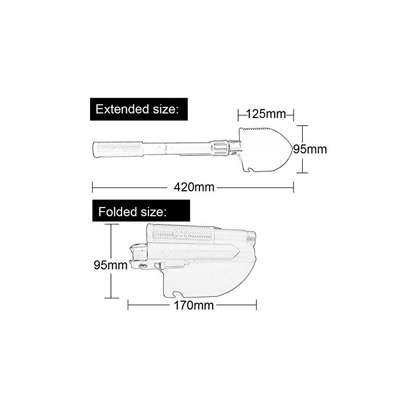 - This Folding Shovel can easily detach in a small size, (Folding size: 155mm/6.1cm) more convenient to pack in pouch, a great partner for carrying on wherever you go.