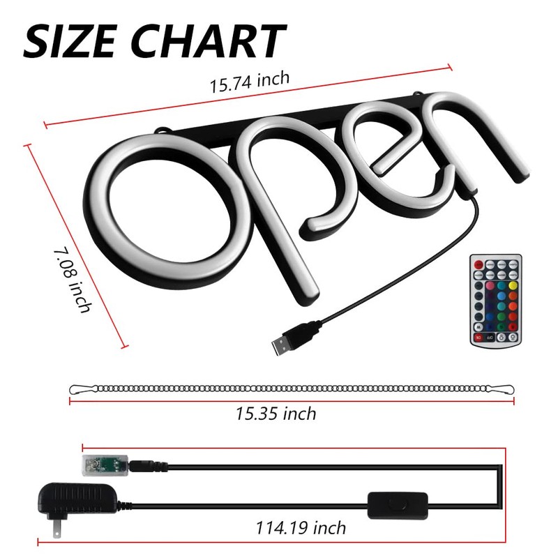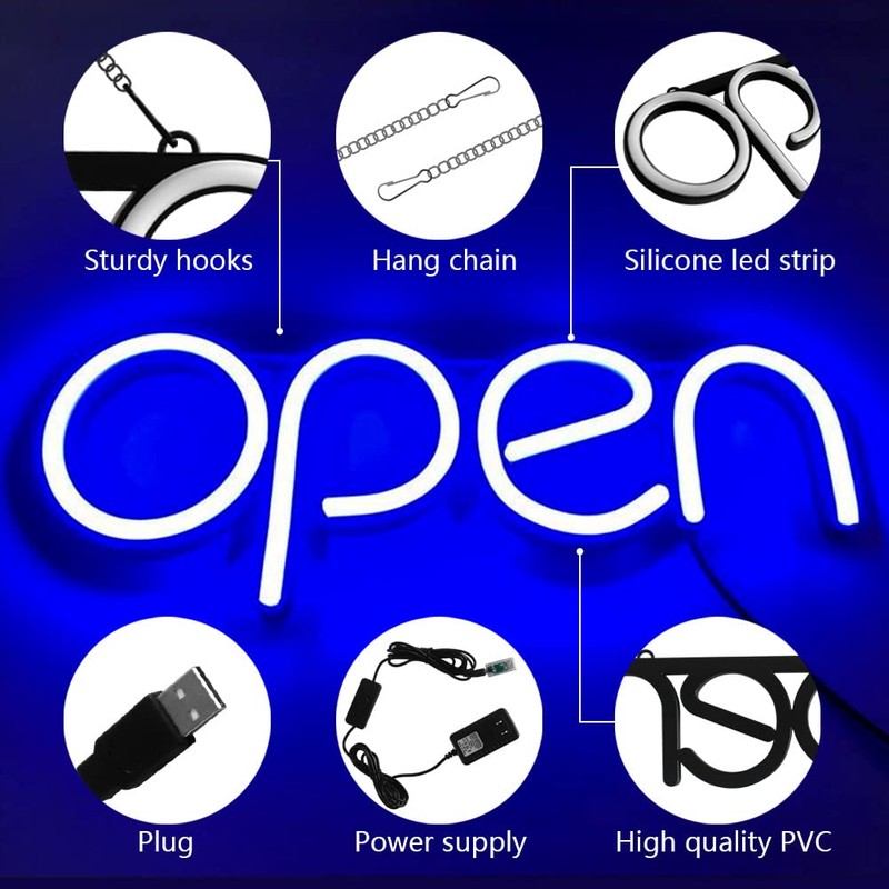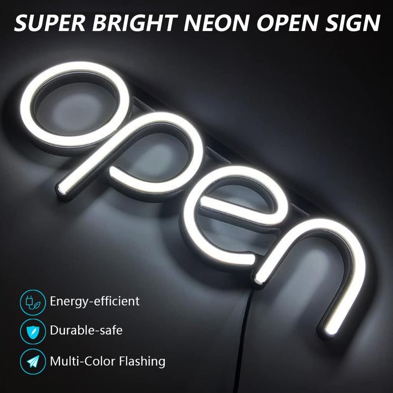- Advantage: Our led open sign built with high quality ABS enclosure components, 16 x 7 inch ultra bright neon light can be bent at will. Simply and attractive design enhances the image of your business.