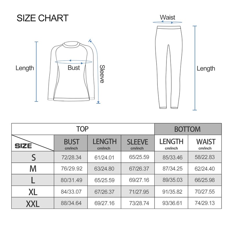 The women long johns sets designed for comfort with an elastic waistband and fleece lined, absolutely non-bulky, excellent for thermal retention.