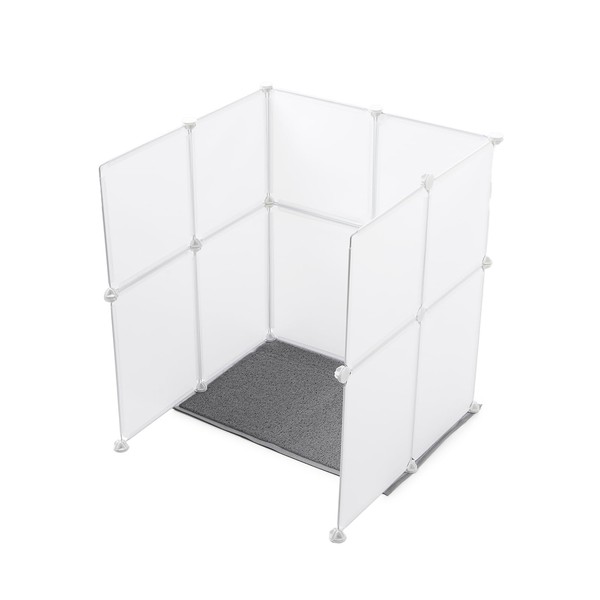 • DIY Splash Guard : It is composed of several sheets and connectors and could be freely matched to install, or spliced into 27.9 x 27.9 x 17.6 in litter box enclosure with lid; You could DIY the splash guard shape and size according to the size of your cat litter box