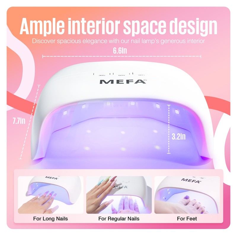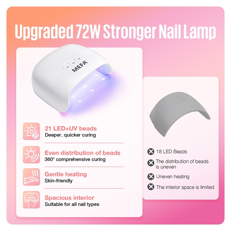 MEFA U V Nail Lamp with 3 Timers & 21 pcs Lamp Beads (72W Portable U V Light for Gel Nails Fast Curing, Professional Nail Art Tool for Home Salon)