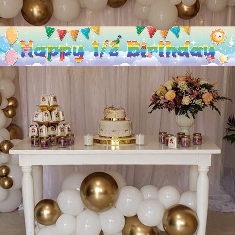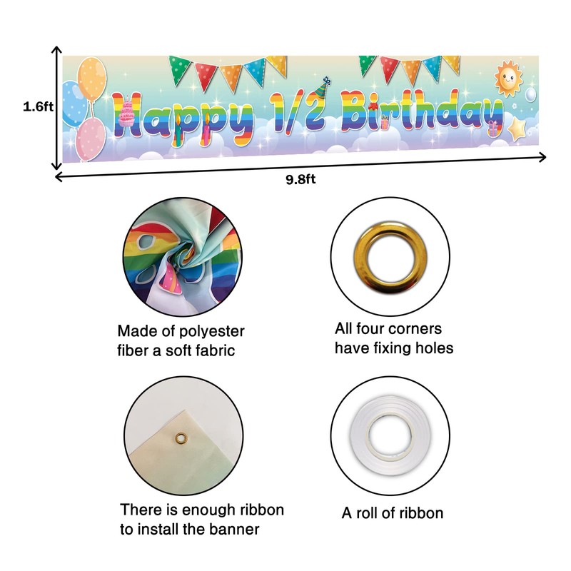 - 【High Quality】:This “Happy 1/2 Birthday” banner is made of high-quality and durable fabric in beautiful colors. It’s weatherproof and reusable.
