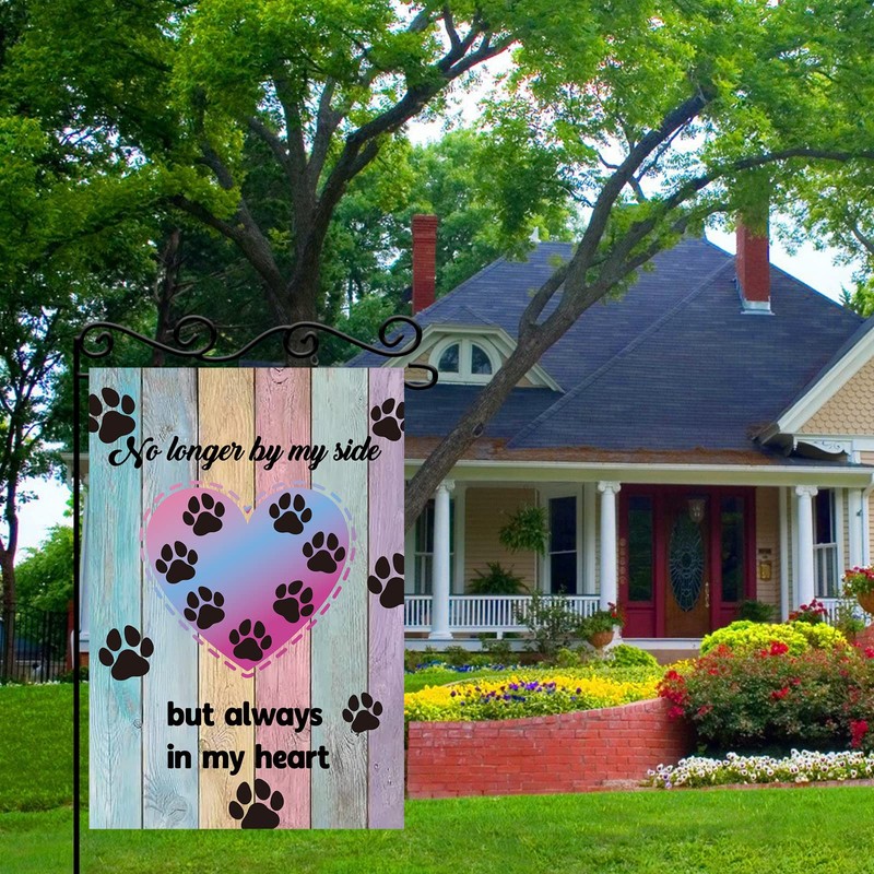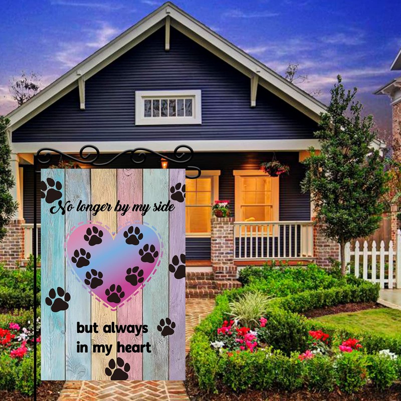 MEFENG No Longer By My Side But Always In My Heart Garden Flag - Paw Print Coloful Wooden Board Garden Banner - Pet Memory Lawn Sign Yard Flag - Dog Cat Loss of Beloved,12 x 18 Inch