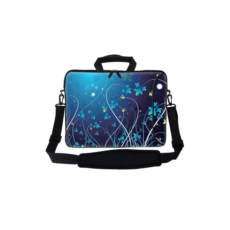 Meffort Inc 17 17.3 inch Neoprene Laptop Bag Sleeve with Extra Side Pocket, Soft Carrying Handle & Removable Shoulder Strap for 16" to 17.3" Size Notebook Computer - Blue Swirl Design