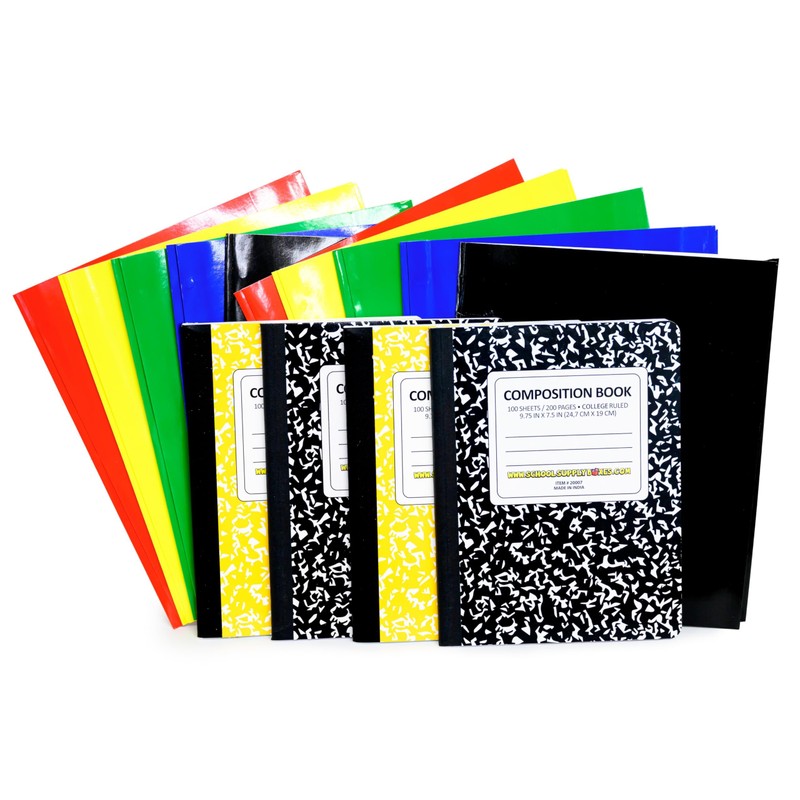 • Stay organized for all your classes with (10) 3 prong two pocket folders, (8) college ruled spiral notebooks, (4) college ruled composition books, (4) pks college ruled loose leaf paper, (2) 5 tab dividers, (2) binder pouches, (1) 80 ct coated paper clips, and (2) staplers.
