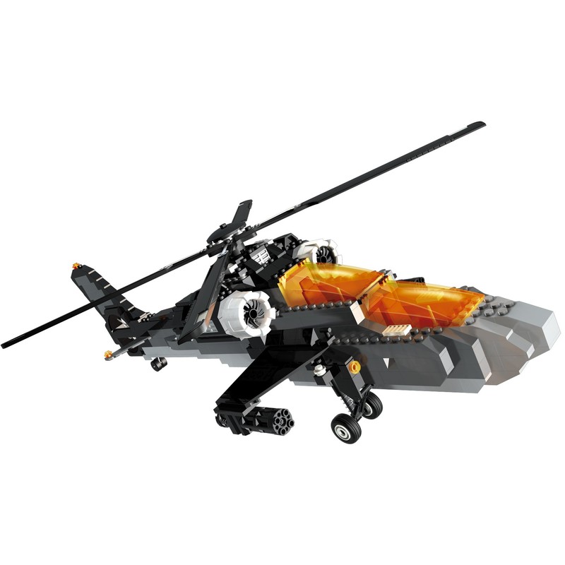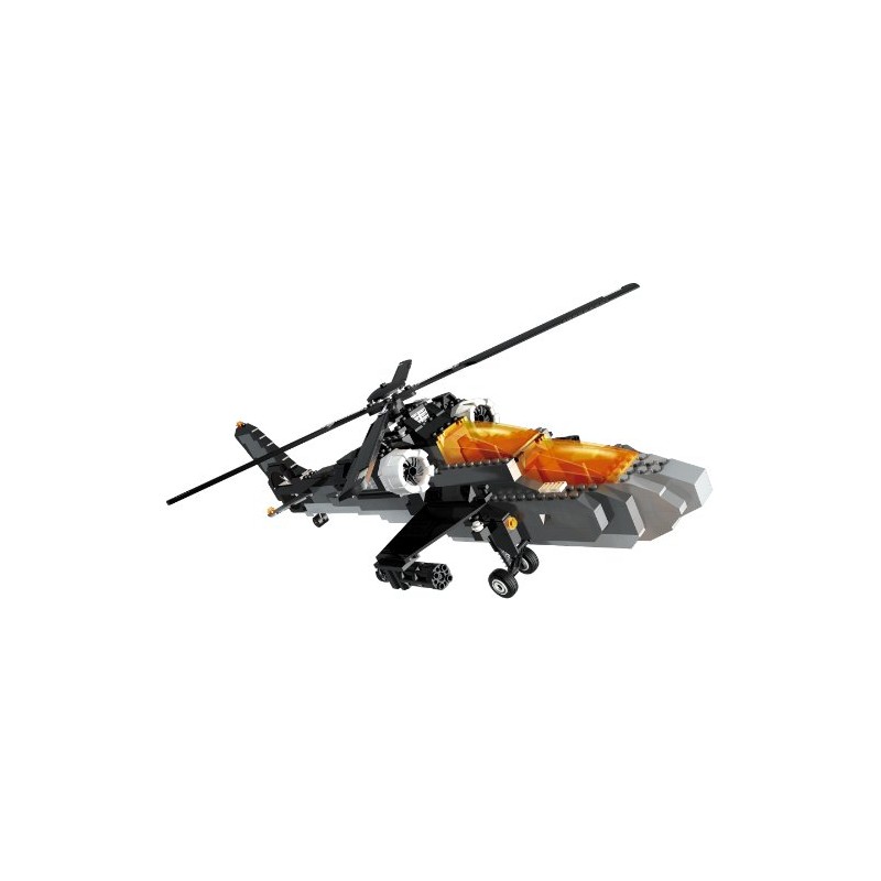 Decked out four-blade, twin cockpit chopper with orange tinted windshields and chrome finishing