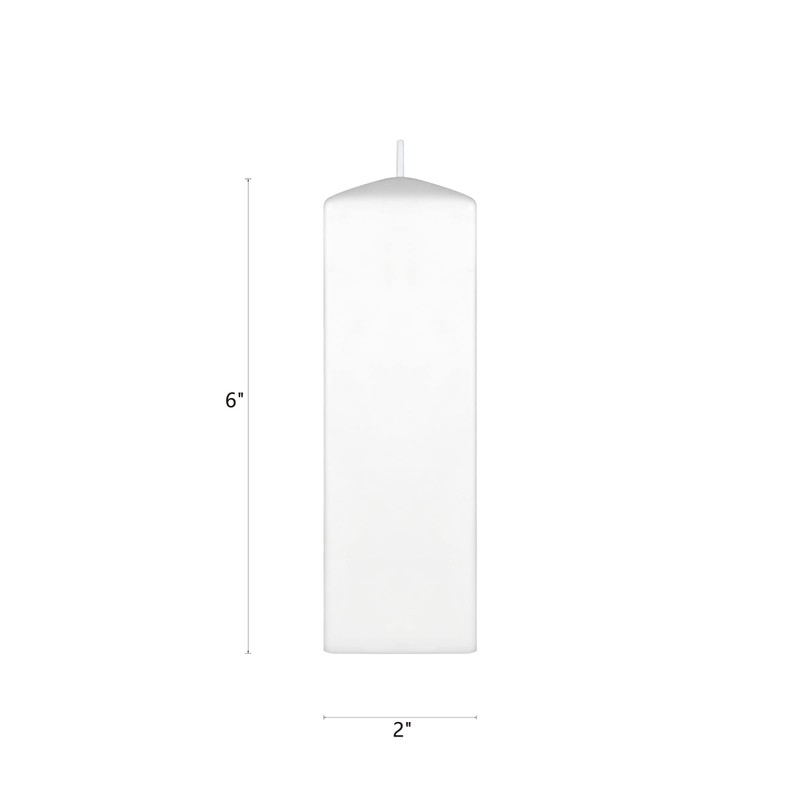 - FIT EVERYWHERE YOU WANT: Their generous size 2 inch x 6 inch dome top square pillar candles makes them ideal for all kinds of decorations and even arts and crafts. They are not way too small, but not bulky either. Put some in the study room, on the floor, TV set, kitchen countertop or your bathroom.