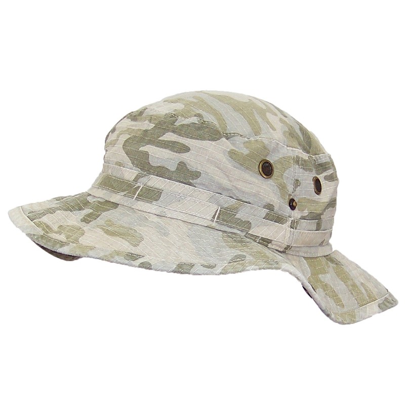 Mega Cap MG Camouflage Ripstop Floppy/Bucket Summer Hat W/Snap Up Sides & Chin Strap - Desert Camo Extra Large