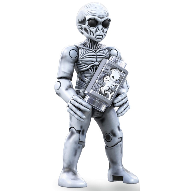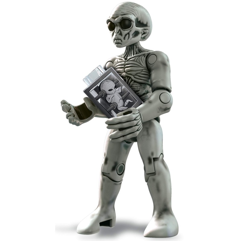 • Highly collectible, super-poseable X-Flies' Grey Alien micro action figure