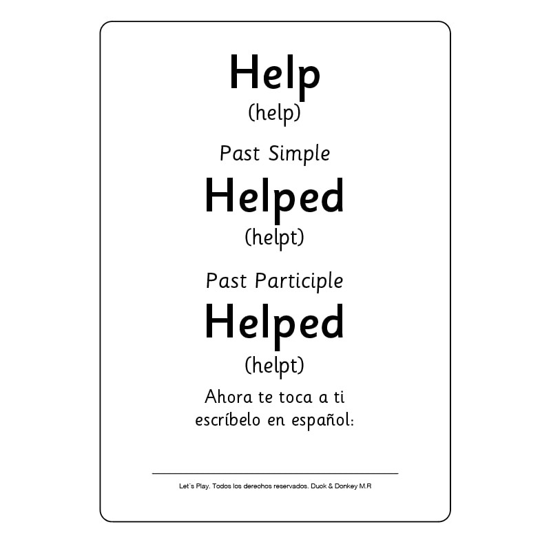 • Al reverso el niño podrá escribir el verbo en español en el espacio correspondiente.