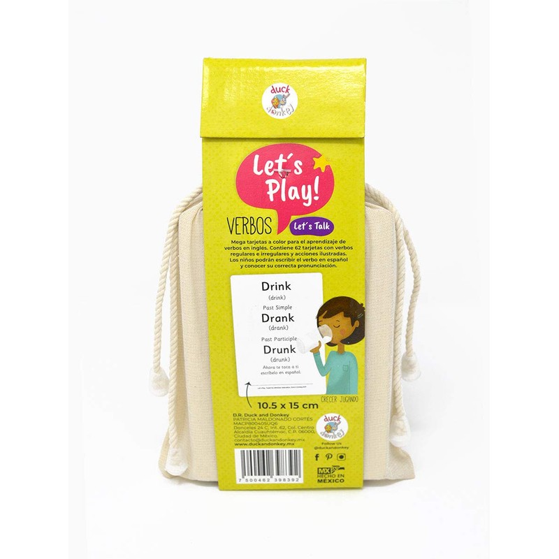 Let´s Play, Mega Flash cards Verbos en Ingles 1 y 2. Tarjetas para el aprendizaje de los verbos en inglés. Recomendadas para niños de 6 años en adelante. Verbos 1, contiene 63 tarjetas de 10.5 de ancho x 15 cm de alto a todo color, con acciones ilustradas, de verbos regulares e irregulares, conjugados y con su pronunciación. Verbos 2, contiene 64 tarjetas de 10.5 de ancho x 15 cm de alto a todo color, con acciones ilustradas, de verbos regulares e irregulares, conjugados y con su pronunciación.