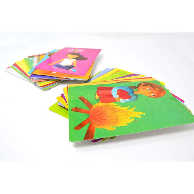 • Verbos 2, contiene 64 tarjetas de 10.5 de ancho x 15 cm de alto a todo color, con acciones ilustradas, de verbos regulares e irregulares, conjugados y con su pronunciación.