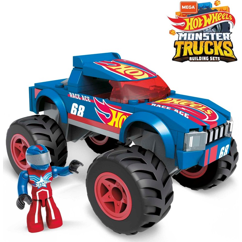 - 69-piece MEGA Hot Wheels Race Ace Monster Truck building toy