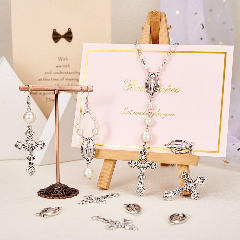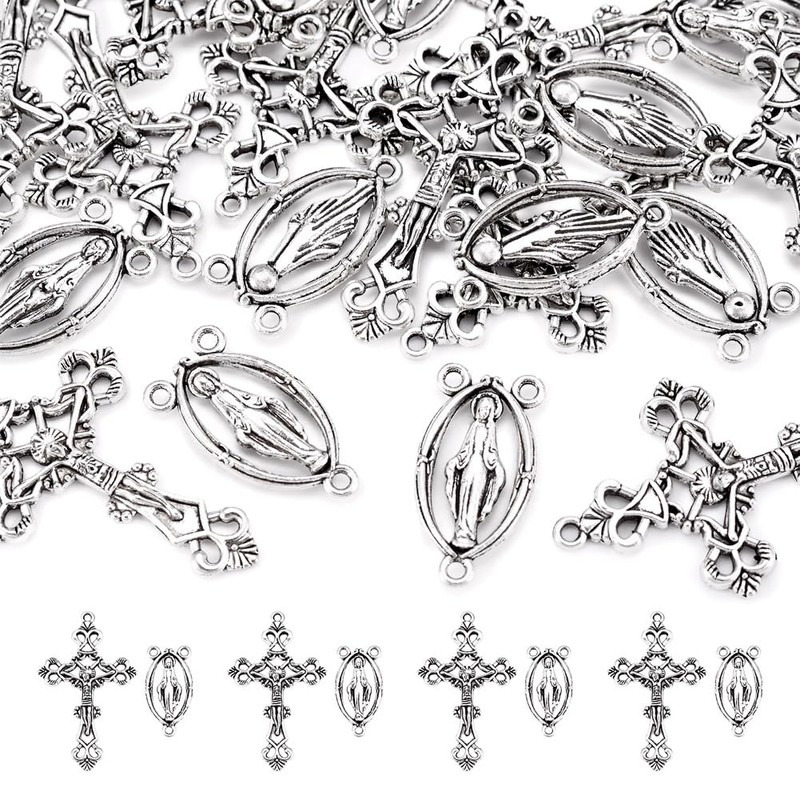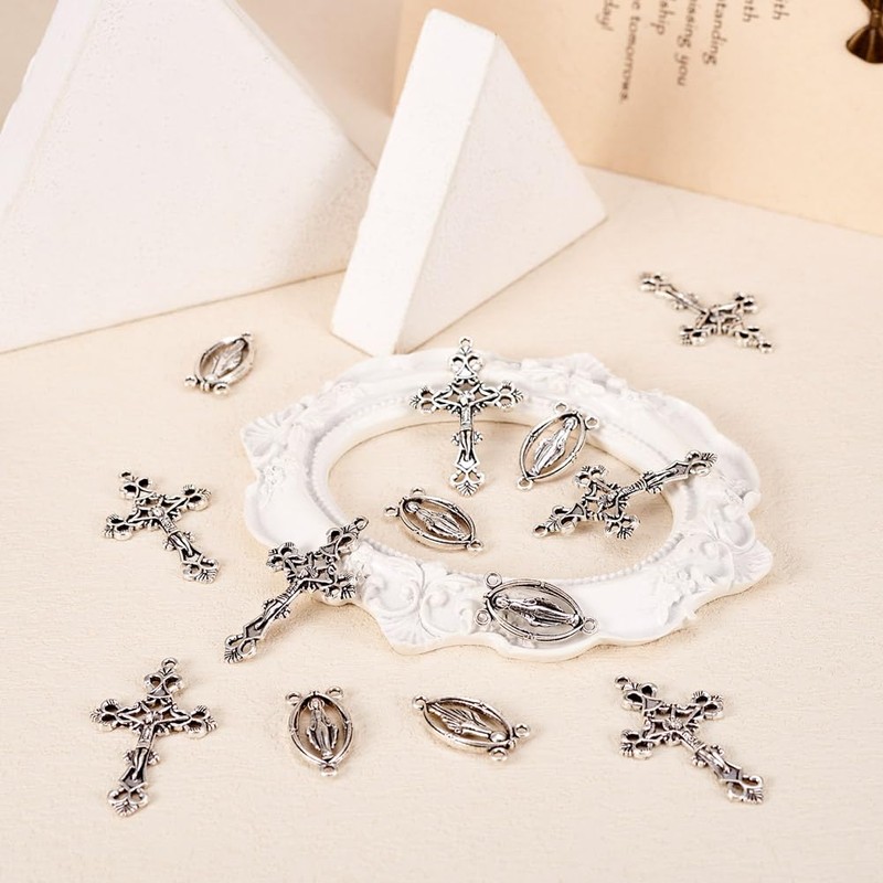 - 【ROSARY BEAD NECKLACE MAKING】: Cross pendant and virgin links create a well combination to make rosary bead necklaces. Just add a necklace chain or faux suede cord to hang your cross pendants and wear as a pectoral medal or use for a rosary part!