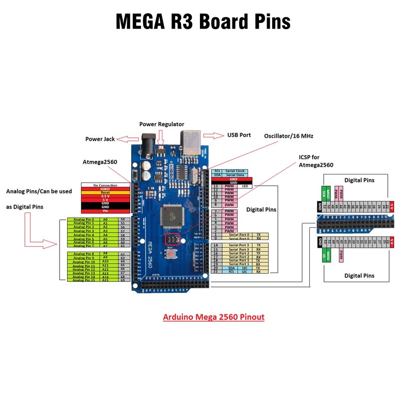 - 【Rich IO Ports】: MEGA R3 has 54 digital IO ports and 16 analog input ports that cover a wide range of application requirements.