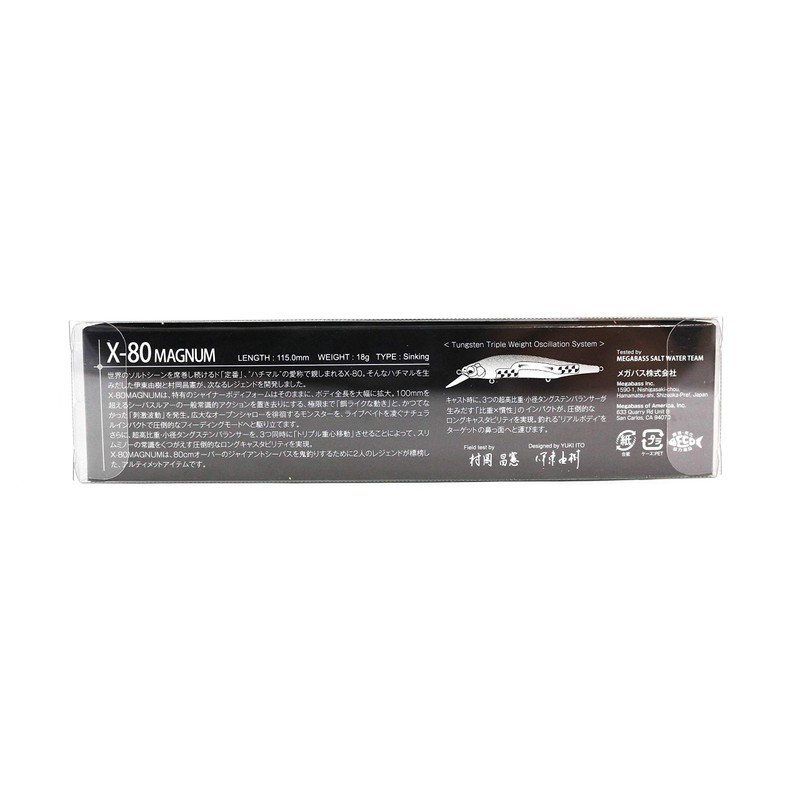 The X80, known in Japan by the nickname "Hachimaru," is a "staple" which continues to dominate saltwater fishing. From its start in the saltwater fishing sphere in Japan, the X80 has gone on to dominate from European bar fishing (European series) to recent Oceania tidal (brackish water) tournaments.Its name has become a "living legend" in the world fishing industry.It continues to amount catches universally.Yuki Ito, the man who created this Hachimaru, and Masanori Muraoka, who focused on its potentiality and pioneered into the frontier of the saltwater world, have teamed up again to develop a new legend.Inheriting the overwhelming "fishing secrets" contained in the Hachimaru that cannot be imitated by others, that form with its logical appearance created by the artisan's body packaging, is, indeed, the Hachimaru itself.However, the total length of the body has been expanded, deserting the ordinary action of a sea bass lure over 3.9 inches (100 mm) for an extremely "bait - like movement" producing a "stimulating pulse" of the likes unseen before.