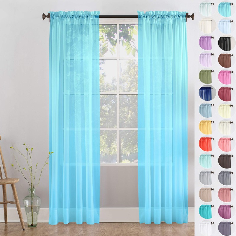 Megachest a pair of slot top voile curtains (Angel Blue, 56" wideX81 drop 2 Panels)