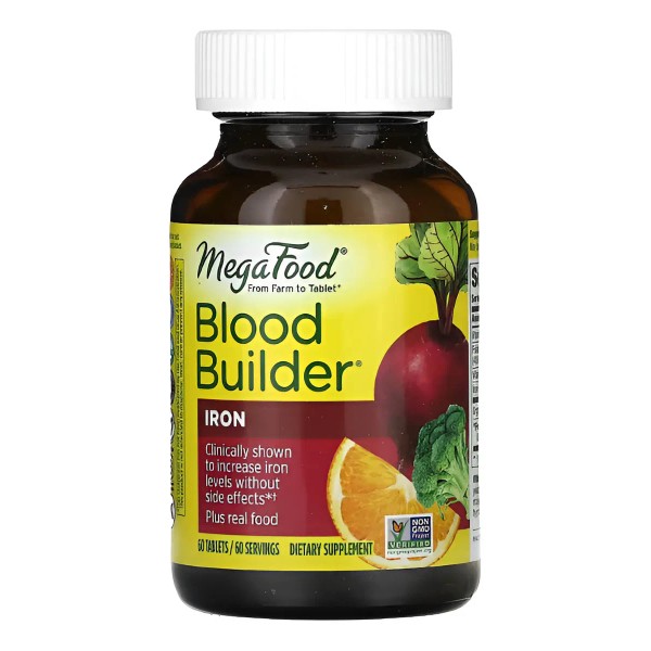 Megafood Blood Builder Suplemento De Hierro 60 Tabs Sabor Sin Sabor