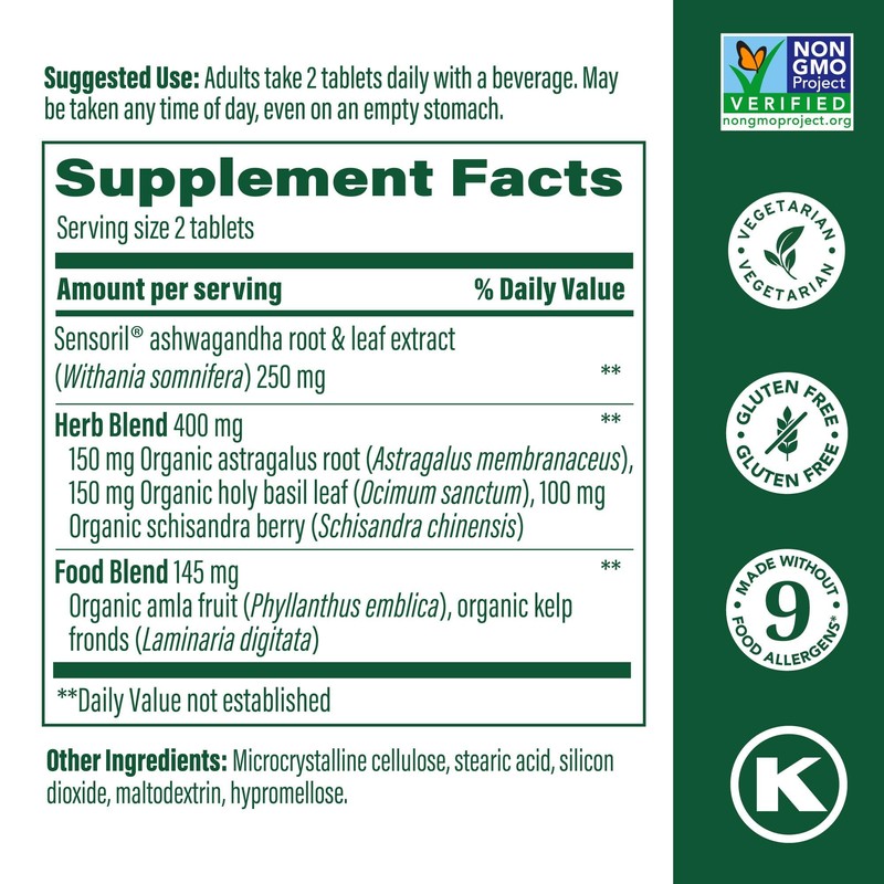 MegaFood Ashwagandha Complex (Formerly Stress Protect) - Ashwagandha Supplements Astragalus Root & Holy Basil - Vegetarian, Gluten Free, Cortisol Supplement - 60 Mini Tablets, 30 Servings